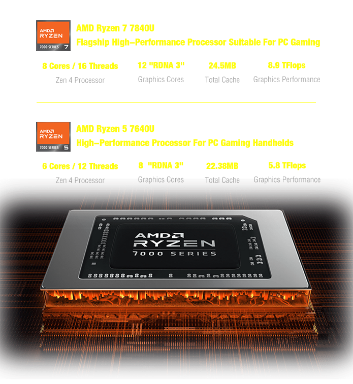 到目前为止,WIN 4是世界上最小的由AMD APU供电的手持设备。凭借强大的7840U / 7640U处理器,它的性能优于Steam Deck的定制APU。WIN 4继承了WIN 3的滑动盖设计和物理按钮布局,并支持Windows 10/11和SteamOS(由Valve提供系统兼容性)。