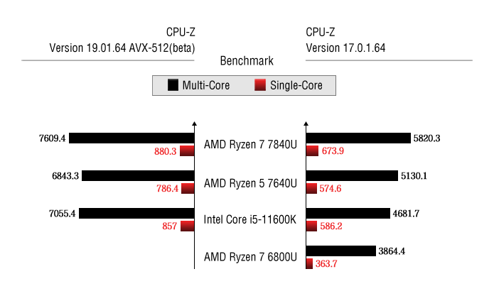 Ryzen 7000系列APU基于AMD Zen 4架构,并首次支持AVX-512指令集。它主要为人工智能和高性能计算应用加速而设计,FP32浮点推断多线程性能提升了1.3倍,INT8整数推断多线程性能提升了2.5倍。
