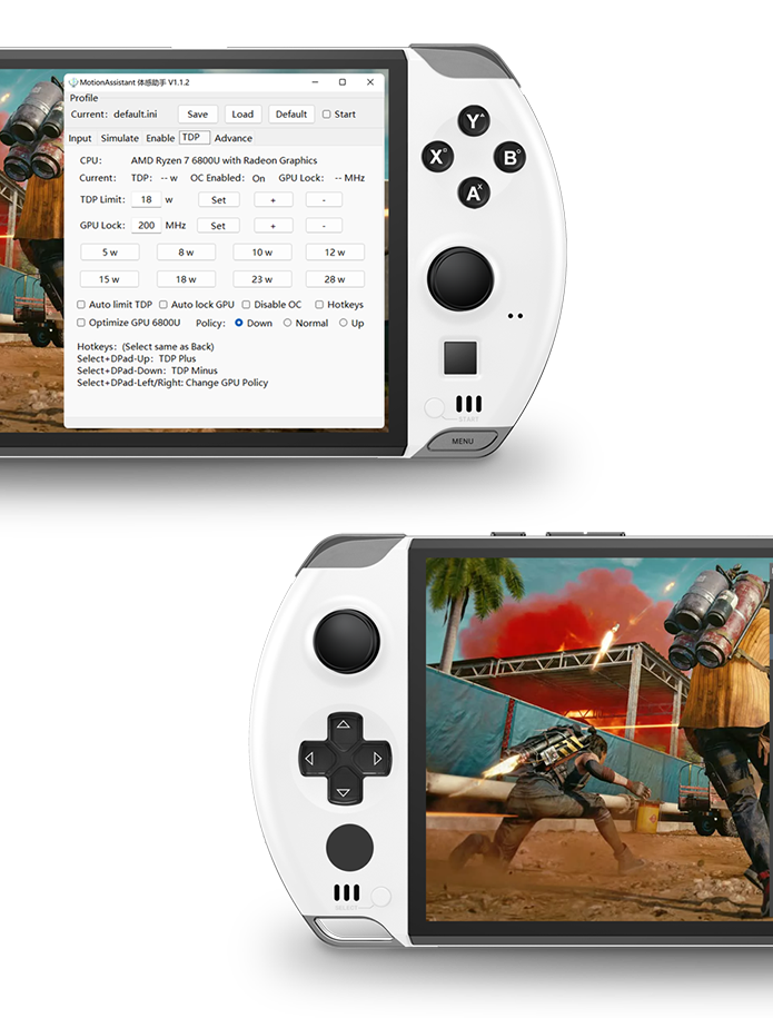 “MotionAssistant”是专为GPD手持游戏设备系列开发的工具,提供各种优化工具,例如以1W为单位的TDP调整、GPU锁频、预定义的功耗设置、前台切换的快捷键、游戏界面上的叠加层、将背部按钮映射为快捷键以及在不调出动作助手界面的情况下更改设置。