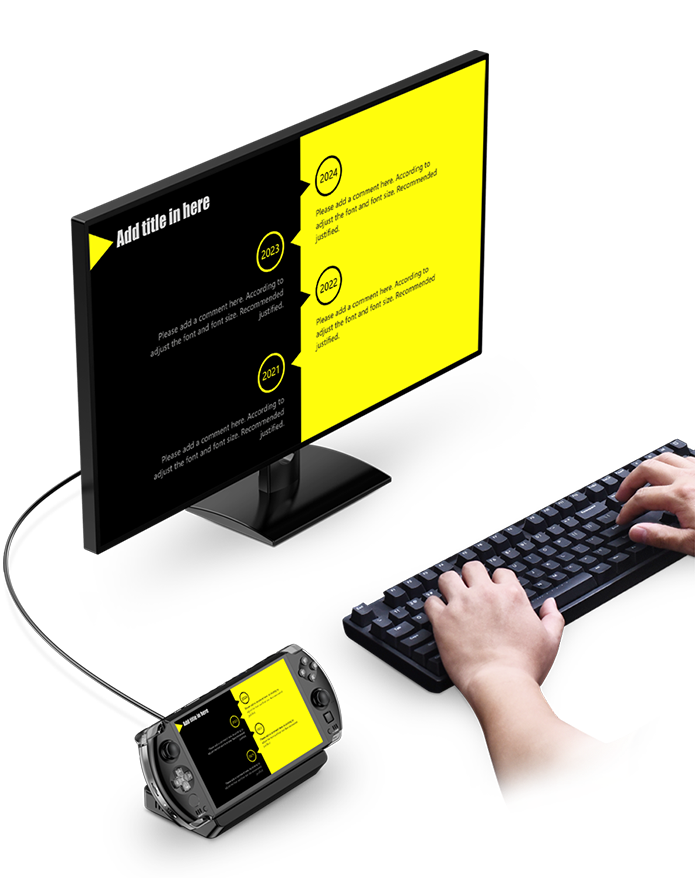 WIN 4 具有双 Type-C 端口,可在连接外部显示器时充电,支持充电、视频信号输出和数据传输。