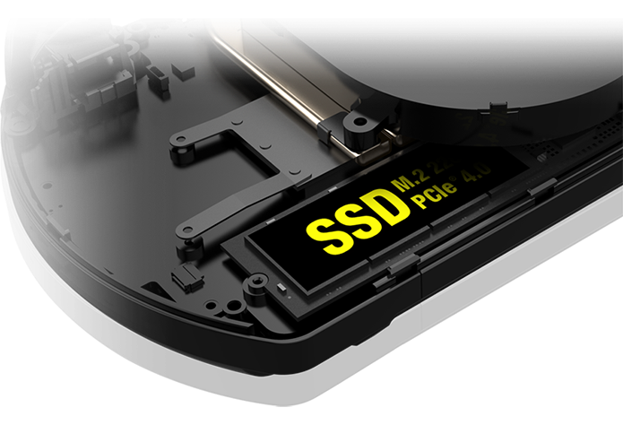 AMD Ryzen 7 7840U / 7640U 支持 PCIe Gen4 规范,理论最大吞吐量为7.877GB/s。官方配置包括512GB / 2TB / 4TB 2280 SSD(PCIe 4.0 ×4),采用长江存储的TLC NAND闪存,实际测试中可达到超过5000MB/s的顺序读写速度,并且可以无限扩展。