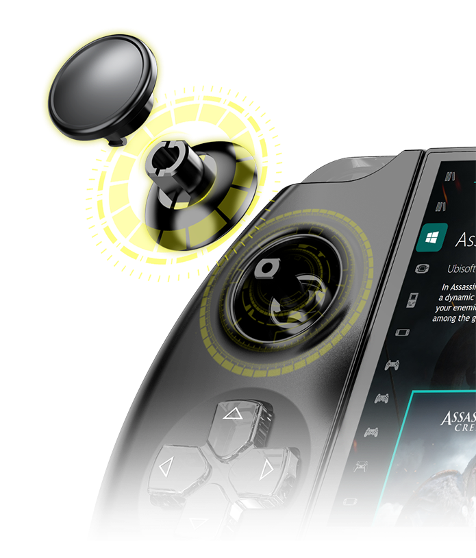为了避免在游戏手柄/鼠标之间频繁切换,WIN 4 现在在设备的右下角配备了一个 Pocket 2 风格的光学手指导航鼠标,并支持点击确认。这意味着用户即使在游戏手柄模式下也可以轻松控制桌面,使游戏和办公任务更加轻松和方便。