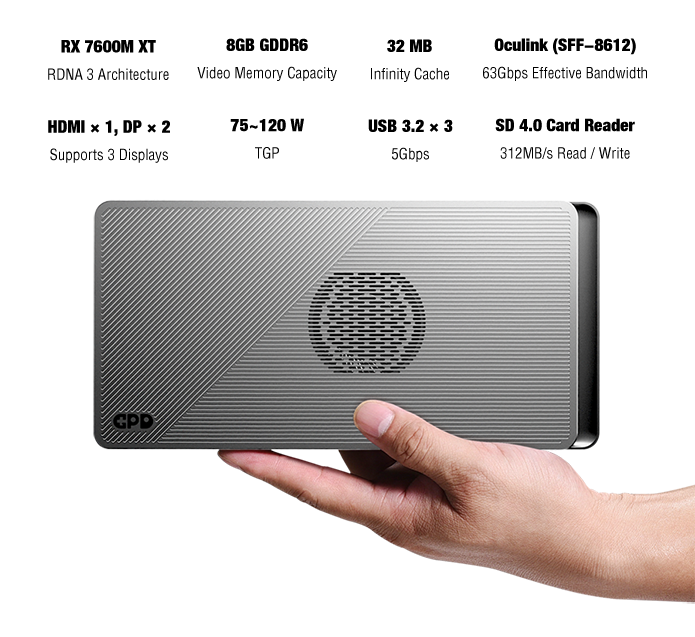 GPD G1是世界上最小的移动图形扩展坞,可以为GPD手持设备提供独立的图形功能。