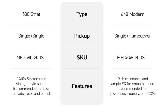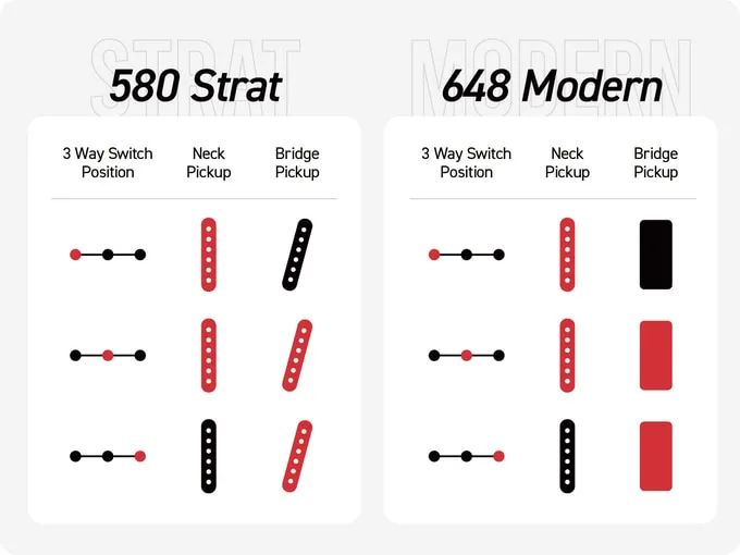 MOGABI电吉他展示了两种类型的磁拾音器,以匹配你期望的声音风格。