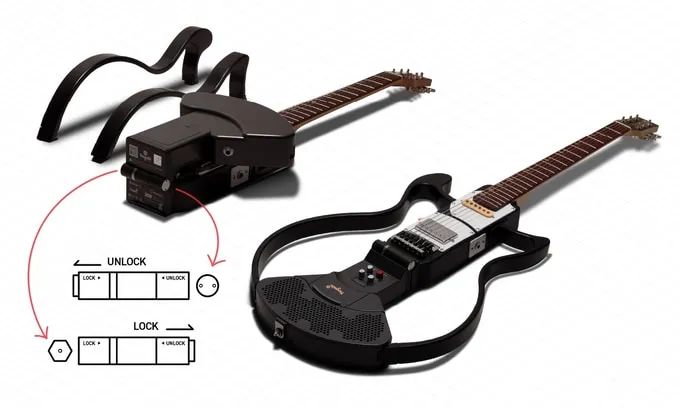 MOGABI Electric保持其作为理想旅行吉他的地位,保留其完美的设计。可以使用扣环将其折叠在颈部和音箱之间,并通过双重锁定机制确保稳定性。