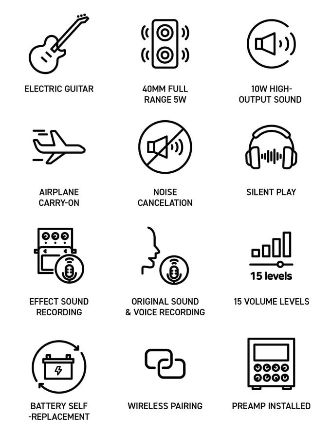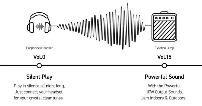 与通常要应对尺寸、重量和依赖外部放大器等限制的传统电吉他不同,MOGABI Electric Guitar摆脱了这些局限。作为一体化解决方案,它无缝集成了吉他和放大器系统。通过插座连接器轻松将音频输出到MOGABI扬声器,根据个人喜好进行定制。