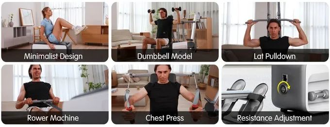 0-80kg阻力/ 可折叠设计/哑铃凳/全方位史密斯机/低噪音/划船机/普拉提/100多种锻炼......
