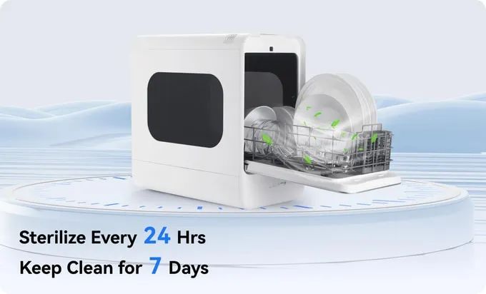 此外,每24小时自动消毒一次,确保你的碗碟在繁忙日程或旅行时高达7天保持新鲜洁净,让你安心无忧。