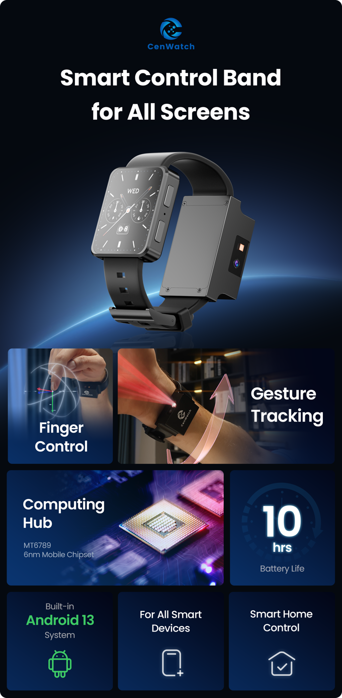 CenWatch,适用于所有屏幕的意念控制手环,通过手势控制所有设备,进入数字控制新时代。