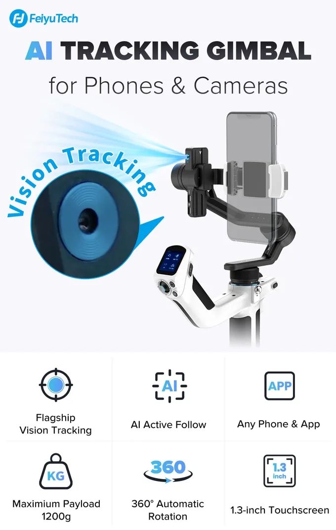 将你的任何智能手机转变为一个AI驱动的主动跟踪设备,与你最喜欢的应用程序无缝配合。AI跟踪使你能够在任何手机和任何iOS/Android应用程序上跟踪对象。这意味着你可以在TikTok直播、WhatsApp视频通话、在线工作或学习会议中进行跟踪,或者仅仅与智能手机的原生相机一起使用——还有更多功能。