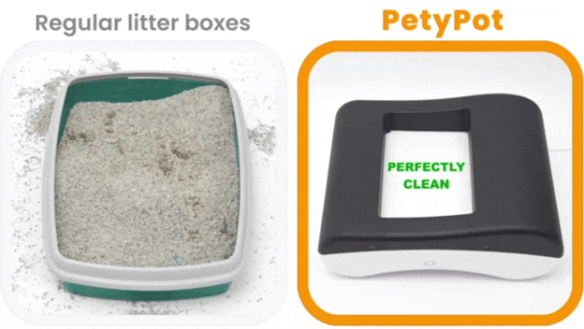 PetyPot在每次使用后都会将脏垫片替换为新的。与普通猫砂箱不同,普通猫砂箱中总会残留一些废物,而PetyPot确保你的猫咪始终有一个完美干净的地方。