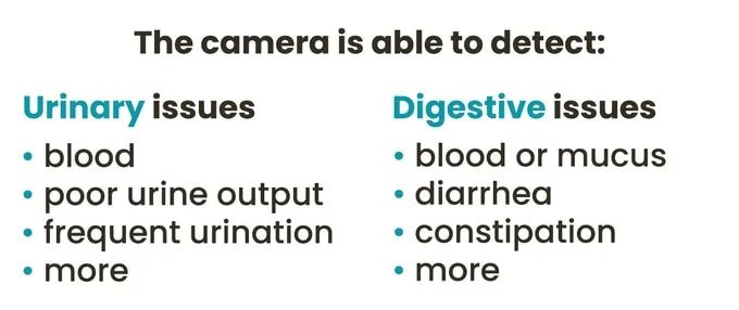 PetyPot的白色垫片使你能够轻松发现猫咪尿液和粪便中的问题,这些问题在普通猫砂中可能会被忽视。如果你担心错过什么,只需添加AI摄像头,将PetyPot转变为真正的24/7健康监测系统。