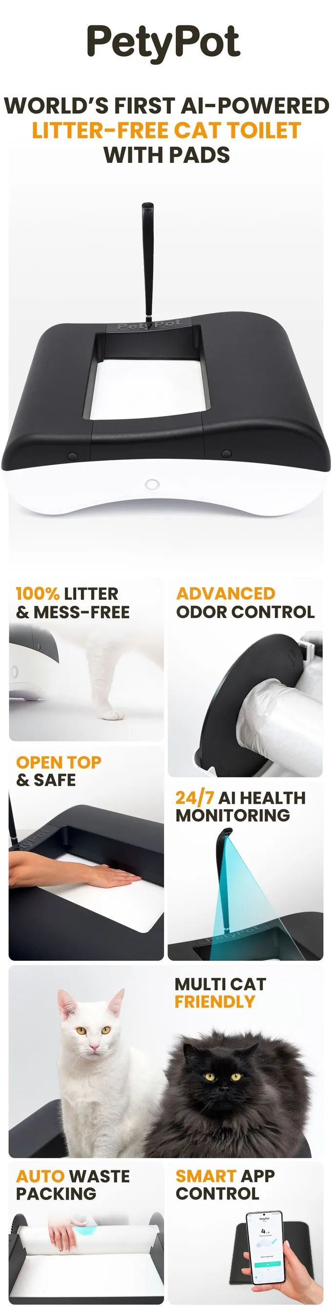 PetyPot是一款AI驱动的无猫砂自清洁猫厕所,让你告别每日铲屎、猫砂追踪和异味。