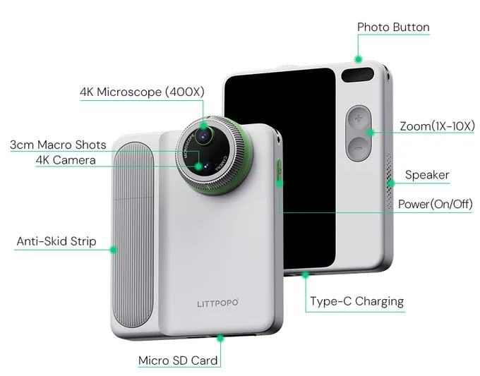 MicroCam X1的标准4K摄像头,捕捉清晰、鲜艳的图像和视频——适合日常生活中的风景、微距拍摄,无需繁琐操作。