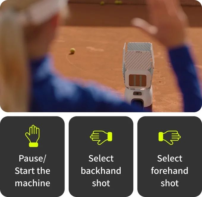 无需应用程序,通过语音和手势控制调整发球、模式或难度。语音指令由臂带执行,手势操作支持开始、暂停和切换击球,保持专注,精准发力。