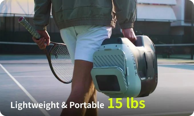 Tenniix重量仅为15磅,是传统设备的一半,此紧凑型训练设备可发球速度达75英里每小时,旋转速度±5000转,能容纳超过100个球,确保连续练习。配合基础模块,增强场地覆盖能力,挑战你的步伐、节奏与控球技巧。随时随地实现智能训练。