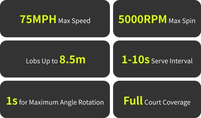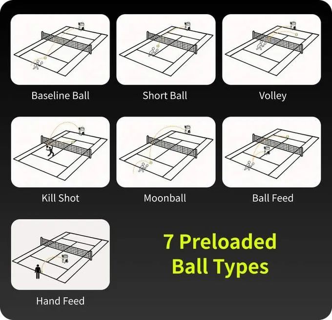提供七种精准校准的球型——底线球、月亮球、短球、截击球、喂球......,全面覆盖底线稳定性、网前攻击等技术要素,加速提升,满足不同技术需求。