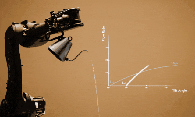 Enso的Flex出水嘴经过同样的数十次原型设计和数千次试验,达成了更平滑、更可预测的流速增长。在25°到50°的倾斜范围内,Flex出水嘴几乎实现线性流速,从2到26克/秒,为用户提供更广泛的表达空间和直观的倒水控制。
