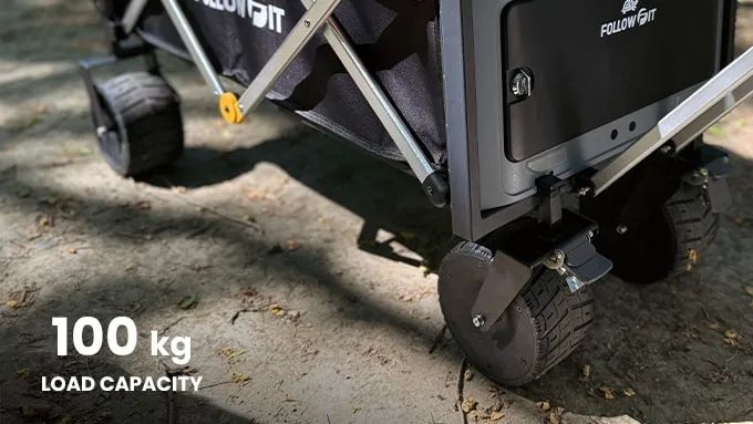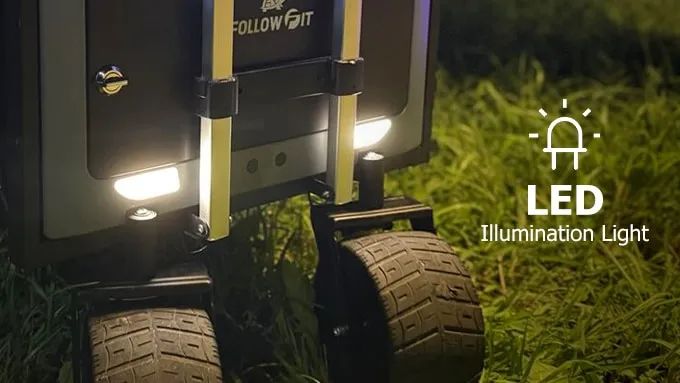 FollowFit设计坚固,能应对户外探险的严苛环境。全地形适应性配备防滑履带式通用轮胎,轻松应对泥泞、岩石、草地等复杂地形。