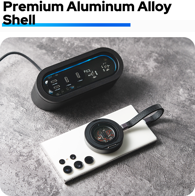 磁吸设计大幅提升桌面空间利用率与功能性,科幻金属外观符合现代用户审美。这款一体化现代解决方案满足多重需求,优化桌面布局,减少线缆杂乱,提升生产力与生活品质。