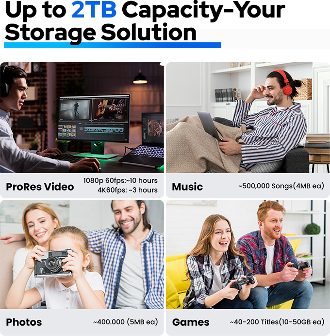 存储空间不足?DK-DISK2支持容量高达2TB的NVMe M.2(2230)固态硬盘,提供海量存储、极速传输和数据安全保障,随身携带。
