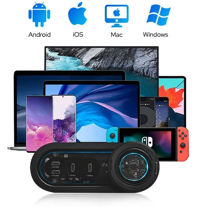 DK-HUB2实现跨平台兼容,支持笔记本、智能手机和外部存储设备的同时连接,无需手动切换端口,确保工作流程连续顺畅。