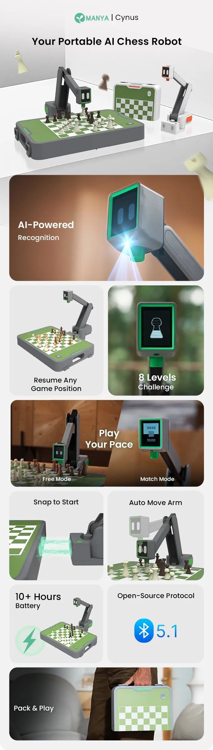 Manya Cynus,便携式AI国际象棋机器人。