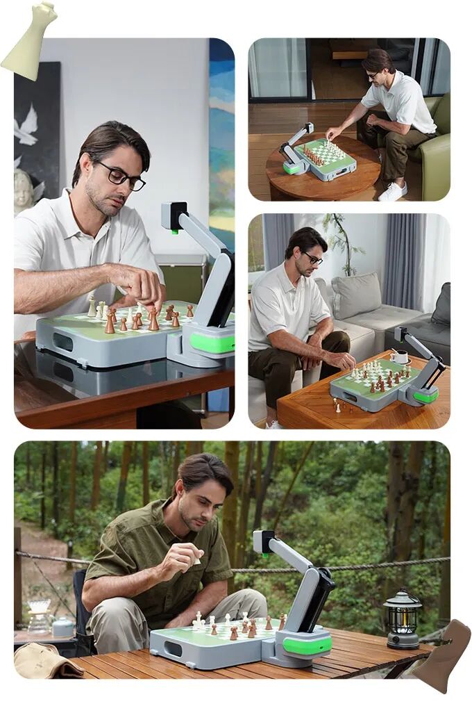 只需将磁性机械臂放置于棋盘上,即可稳固锁定。组装简便,几秒钟即可开始对局。