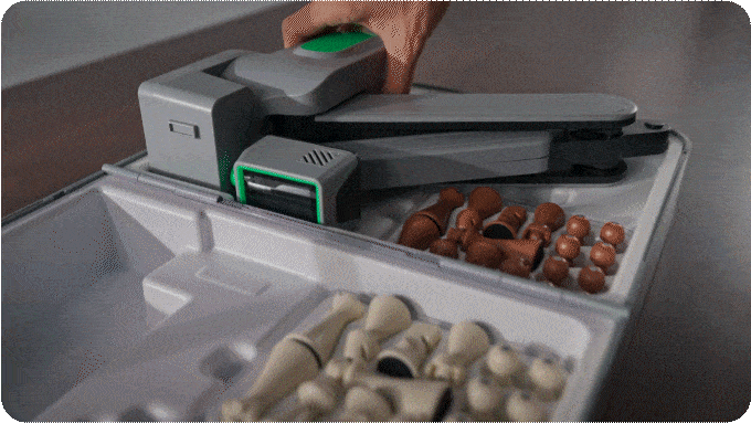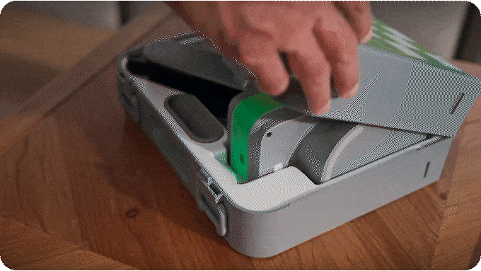 Cynus可折叠成便携箱,所有组件包括棋盘、机械臂和棋子均可收纳于约两台叠放iPad大小的紧凑箱体中。配备隐藏手柄,便于携带至下一次聚会、野餐或假日出行。