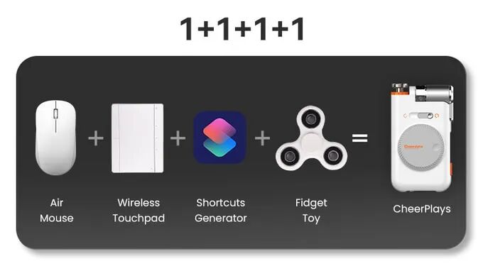CheerPlay是工作与娱乐的终极工具,集成了触控与指尖陀螺,是融合了空中鼠标、键盘、演示器及10米无线快门控制的多功能设备。