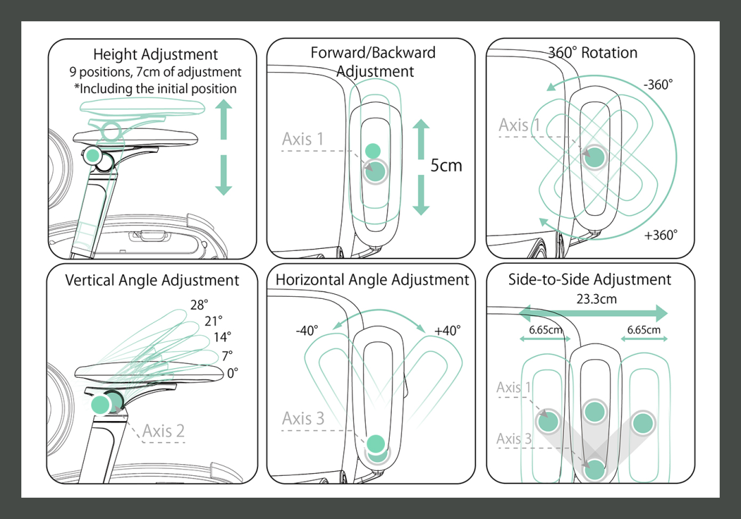3D可调节头枕温柔包裹头部,缓解压力,预防疲劳。不论是专注工作还是休憩暂养,它都能提供量身定制的支撑,让你保持舒适高效。