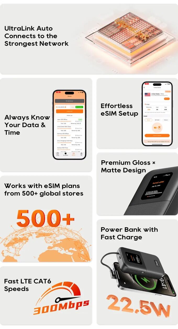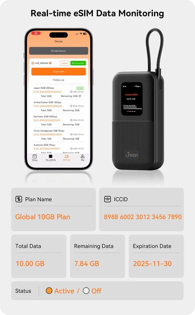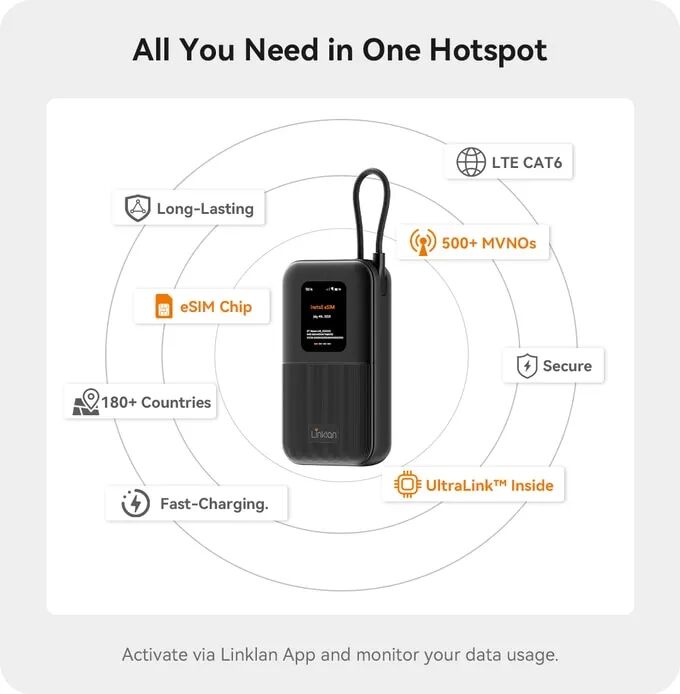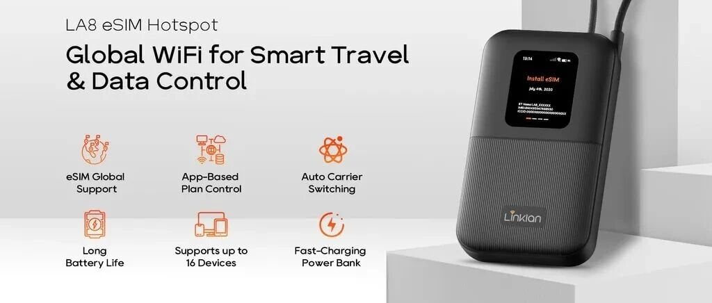 Linklan eSIM Hotspot (LA8),为你提供全球智能移动热点。