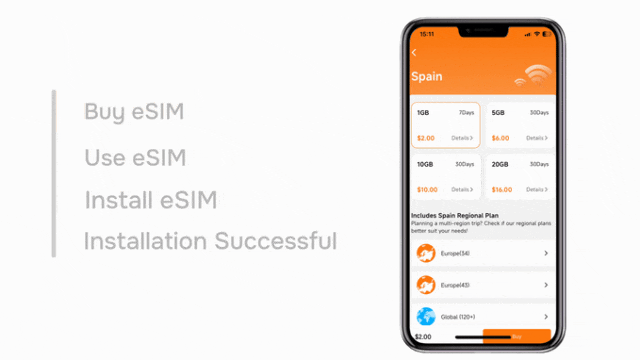 选择任何你喜欢的eSIM套餐,即刻安装,轻松切换网络——支持超过500个eSIM商店,覆盖180多个国家,一机在手,全球畅行。