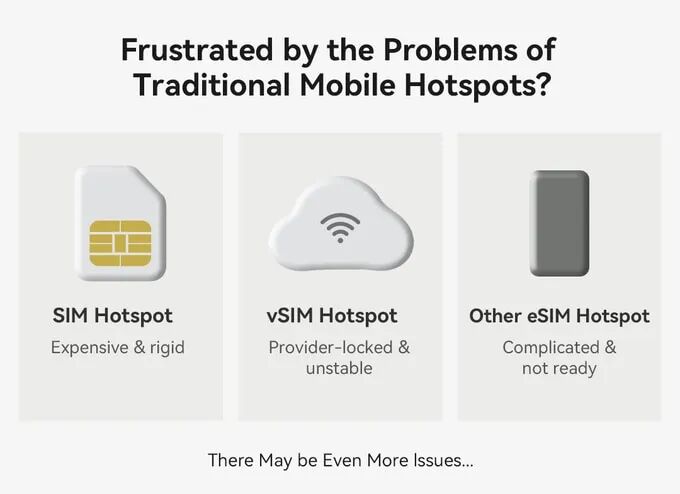 旧的SIM卡和vSIM热点设备限制众多——你被束缚于单一运营商、固化的套餐和不稳定的云连接。