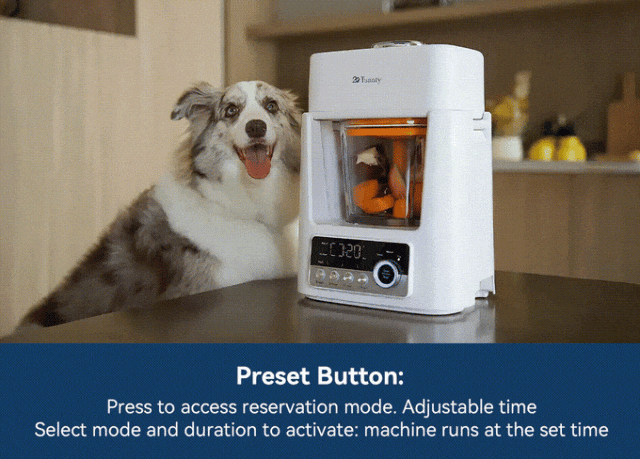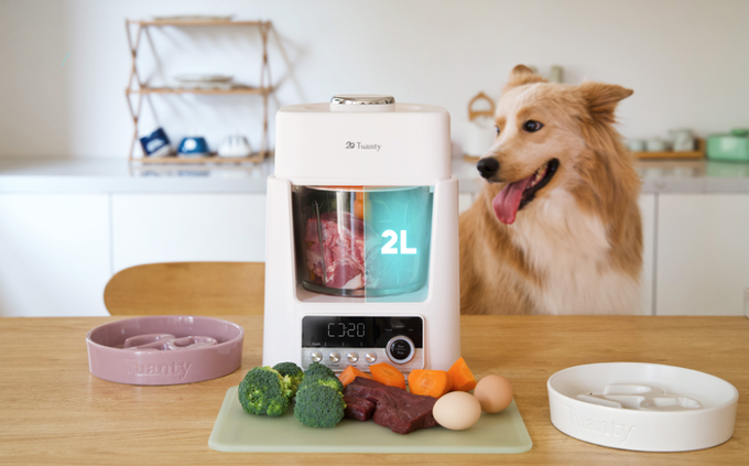 Tuanty宠物新鲜食品制造机,只需简单加入新鲜食材,轻点启动,大部分食谱仅需20分钟,即可在一台设备中完成,为宠物提供美味营养的餐点。