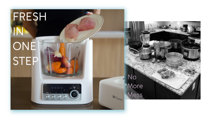 如果你曾为宠物烹制新鲜餐食,你知道那是个时间消耗战。需要蒸汽锅、搅拌机,清理更多。