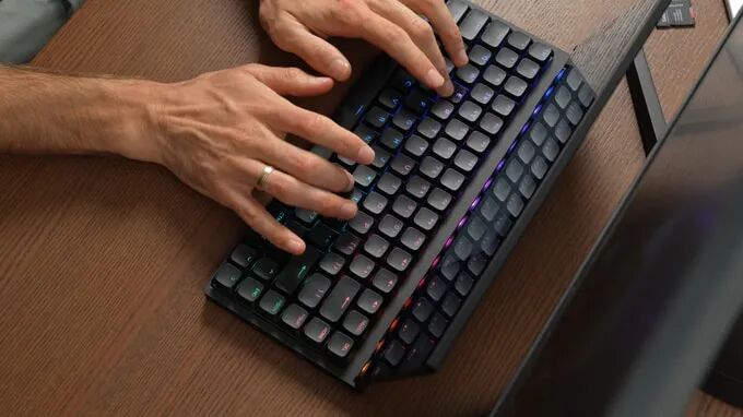 Keebmon采用纤薄机身设计,具备机械开关触感。热插拔机械开关支持个性化定制,优化打字体验。兼容所有Kailh Low-profile Choc V2机械开关。