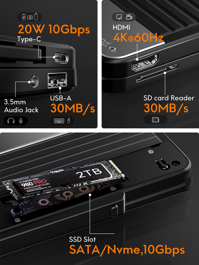 - 4K HDMI输出:可实现4K@60Hz的高清外接显示屏输出。