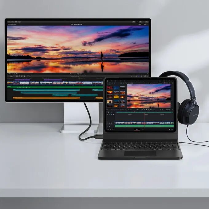 4K@60Hz HDMI接口,让iPad瞬间变身双屏工作站,提升办公与出行效率。配合3.5mm音频接口,实现零延迟的高保真音频监控,是专业音频和协作的理想选择。