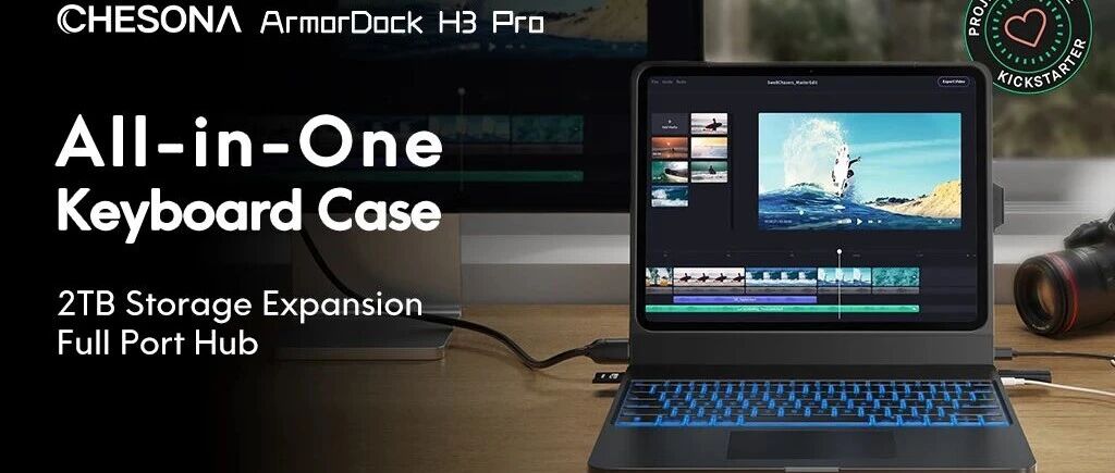 ArmorDock Pro,适用于iPad的6合1固态硬盘扩展键盘保护套。