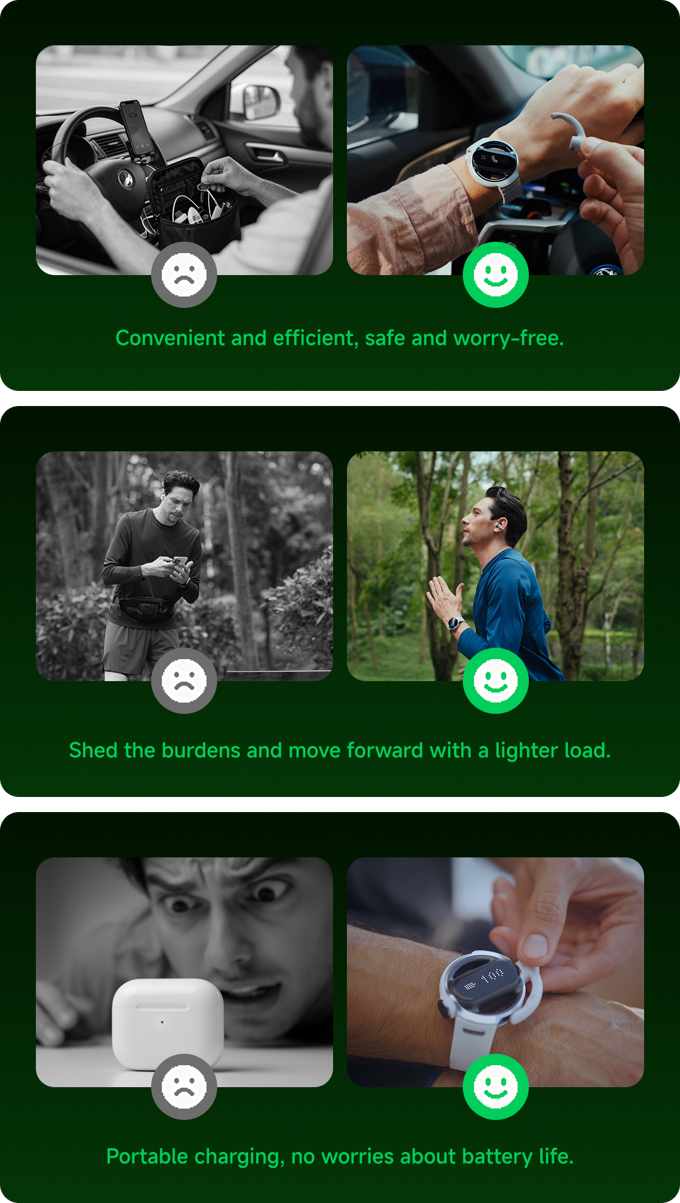 在重要通话前匆忙寻找耳机,为简单的跑步同时操作手机、手表和耳机,以及携带一个不断需要充电的额外设备?