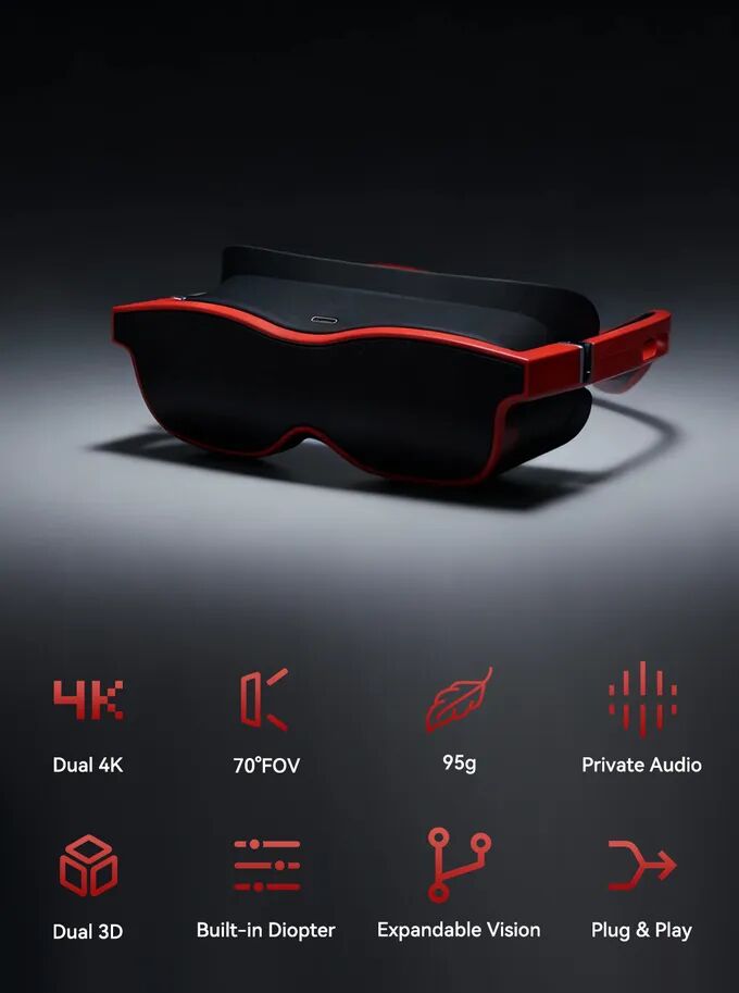 Xynavo仅重95克,将70°宽视场、私人耳内音频、全3D支持和屈光调节巧妙平衡,全部集成于轻盈的机身,让你长时间享受电影、连播剧集或游戏娱乐无负担。