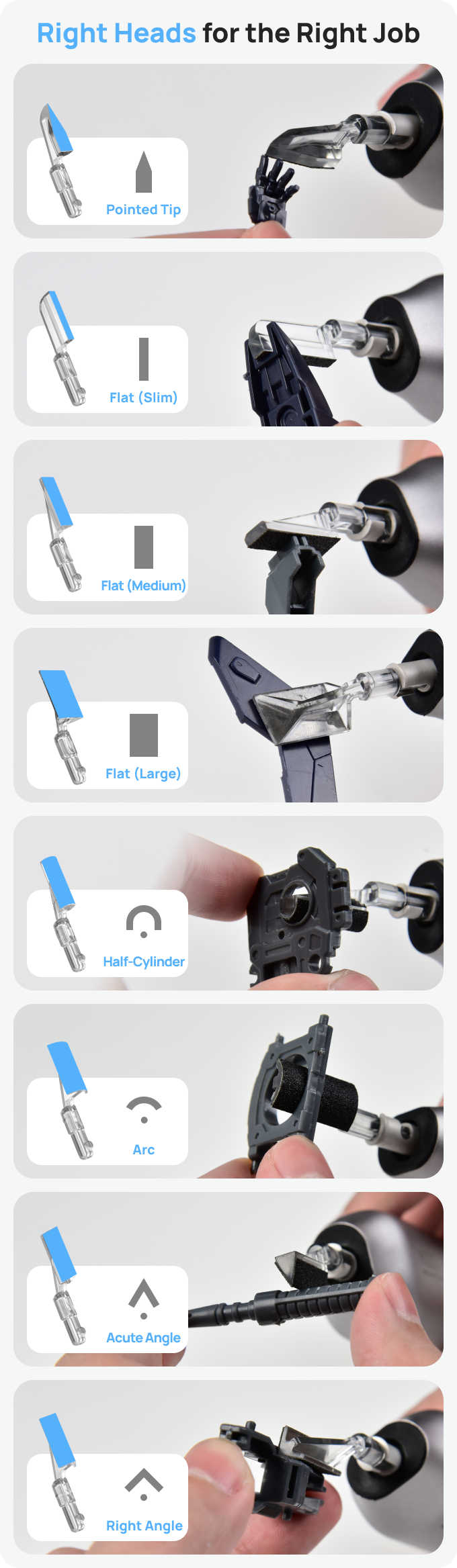 因此,NeoSander 配备了8种砂头形状——每种都针对不同类型的棘手细节而设计。