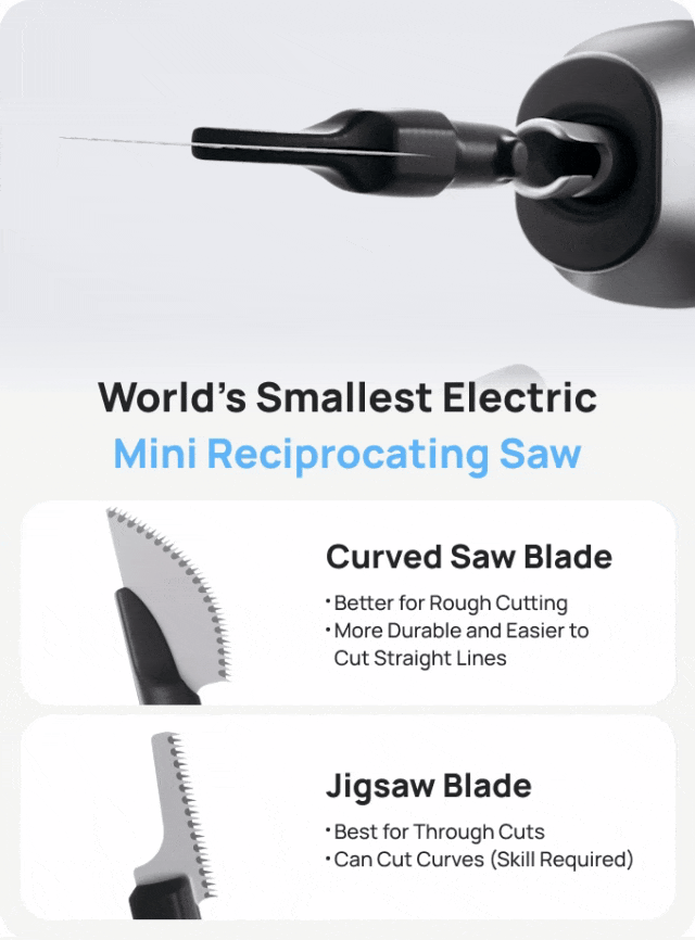 与砂磨轻松自如的往复运动相同的原理,也能轻松驱动锯片,让你在打磨精细细节和切割小部件之间无缝切换。