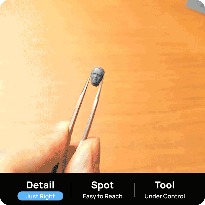 没有笨重的外壳阻挡视线,没有电线让你失去平衡——只有一个紧凑的工具,可以轻松握持在手中,并随着你的手移动到任何细节需要的地方。