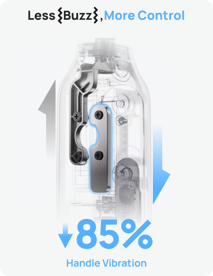 振动不仅仅停留在你的握持处,它会传递到工件上,导致你的另一只手麻木。不久,你的双手就会失去感觉,精度也会随之下降。