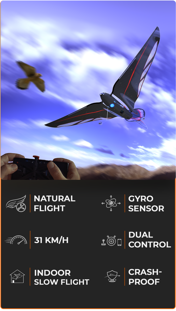 The Swift是一款高性能仿生无人机(扑翼机),通过纯粹的拍打翅膀飞行,宛如真鸟。