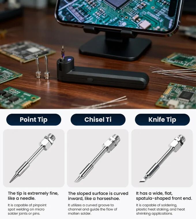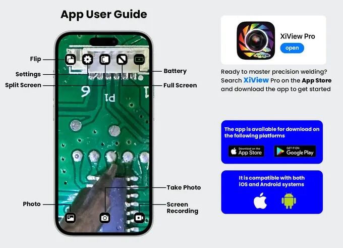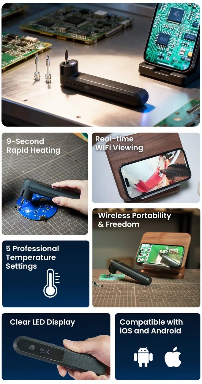 无论你使用的是 iOS 还是 Android,应用程序都能提供无缝体验。从手机维修、PCB 黑客,到珠宝制作和玩具修理——这是你唯一需要的焊接工具。