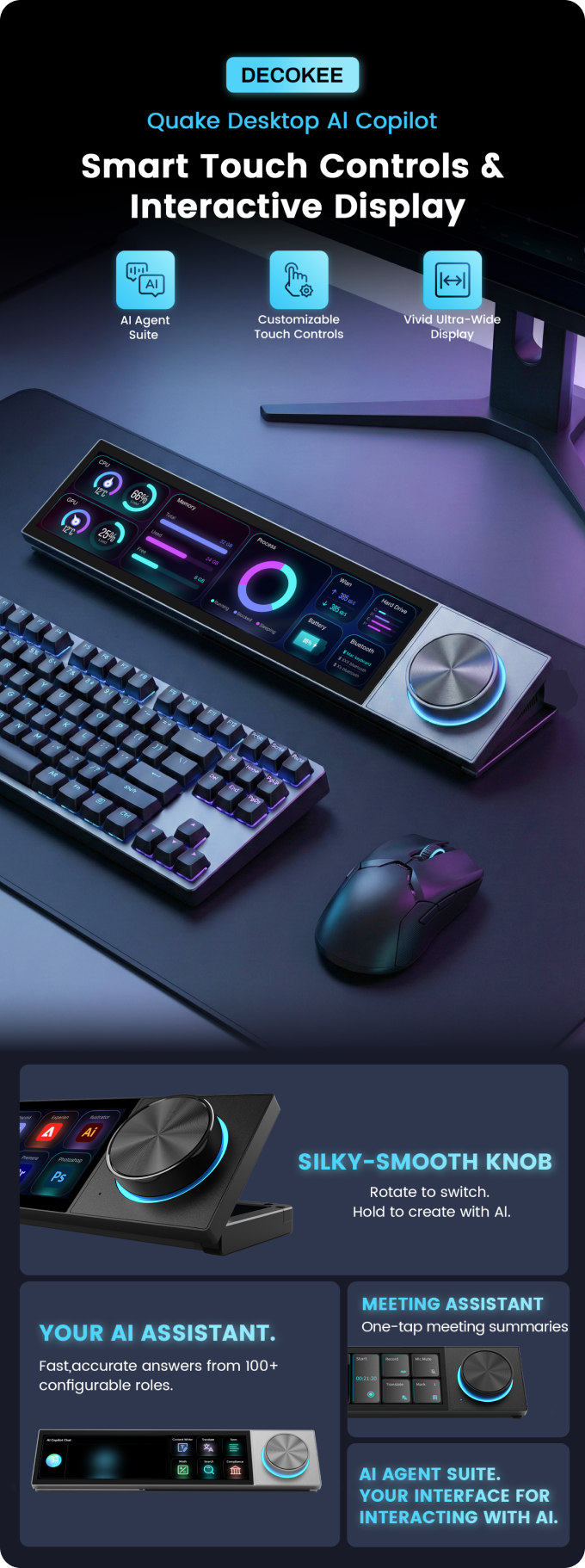 它不止显示信息。更会倾听、理解并执行,服务于你的工作、创作与娱乐。它不仅是宏键盘,不仅是扩展坞,也不仅是副屏。Quake集三者于一体——并由AI驱动。