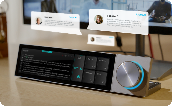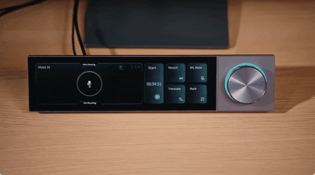 作为以AI为核心的桌面终端,它将AI会议、即时解答、快捷控制与视觉交互融合于一块常亮屏幕。